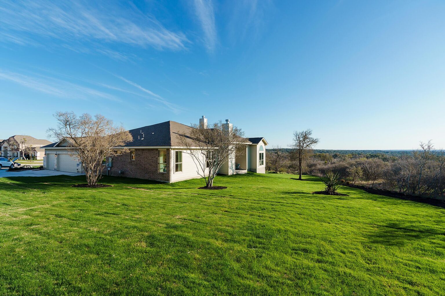 The Braunig Plan at Everly Estates offers a sprawling 2,946 sq. ft. layout situated on a premier 1/2 acre lot. This energy-efficient home features a high-efficiency air conditioning system and Low E 3 solar reflective windows to ensure year-round comfort. The interior is highlighted by luxury vinyl plank flooring and a wood-burning fireplace with a custom stone surround and mantle. The gourmet kitchen is equipped with J-Kraft custom shaker 42” upper cabinets and a premium GE® stainless steel appliance package. Outside, the property includes a fully sodded yard with native drought-resistant landscaping and a professional irrigation system. With its brick and stone elevation and 30-year architectural shingles, this home perfectly blends Hill Country accents with modern durability.