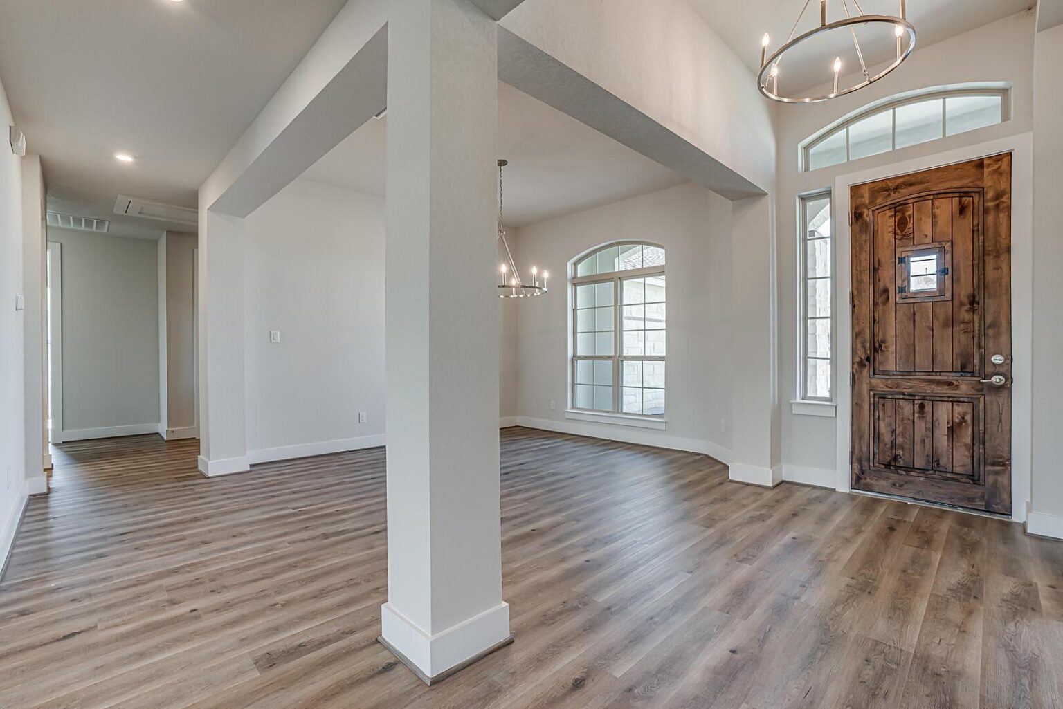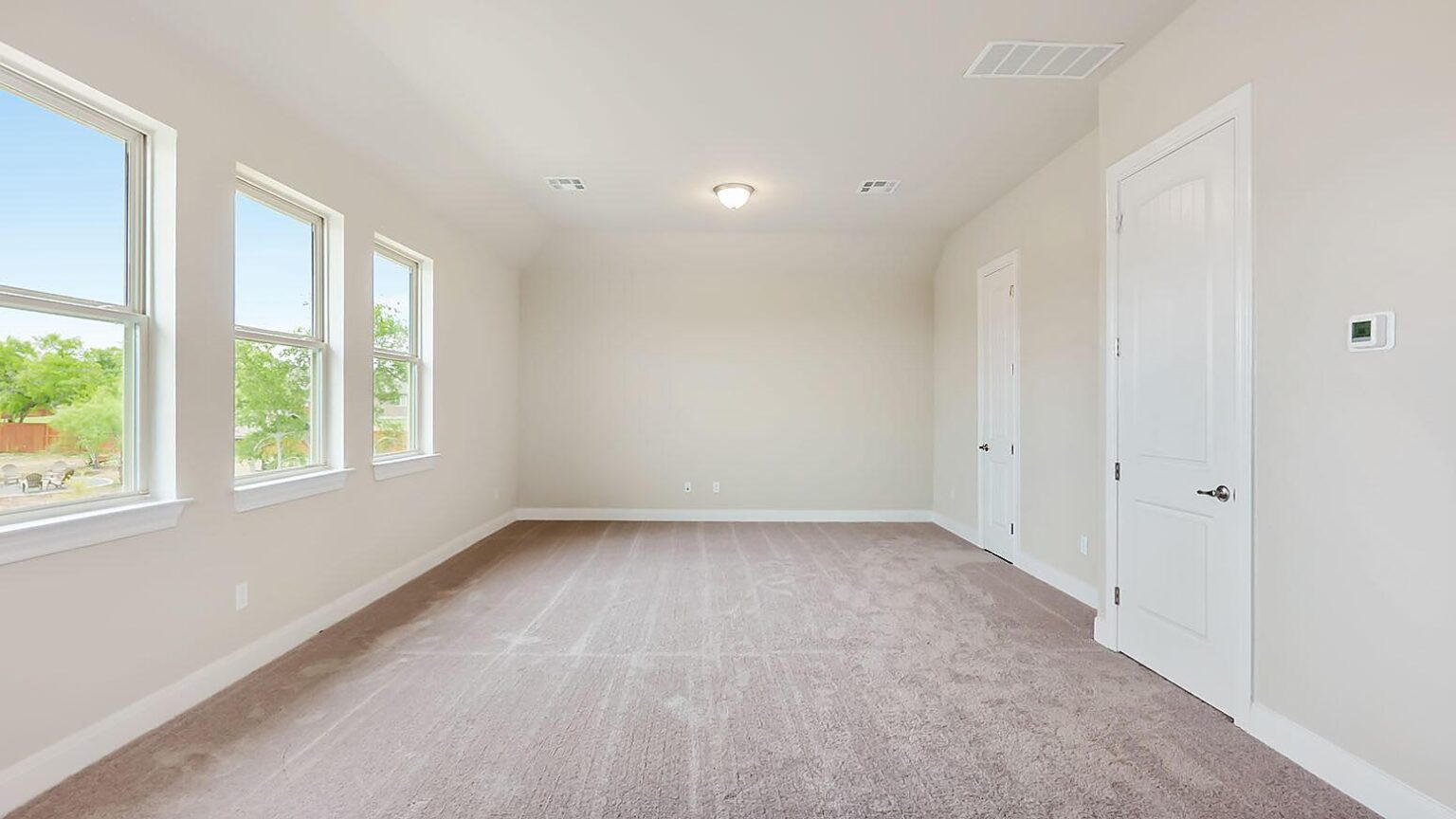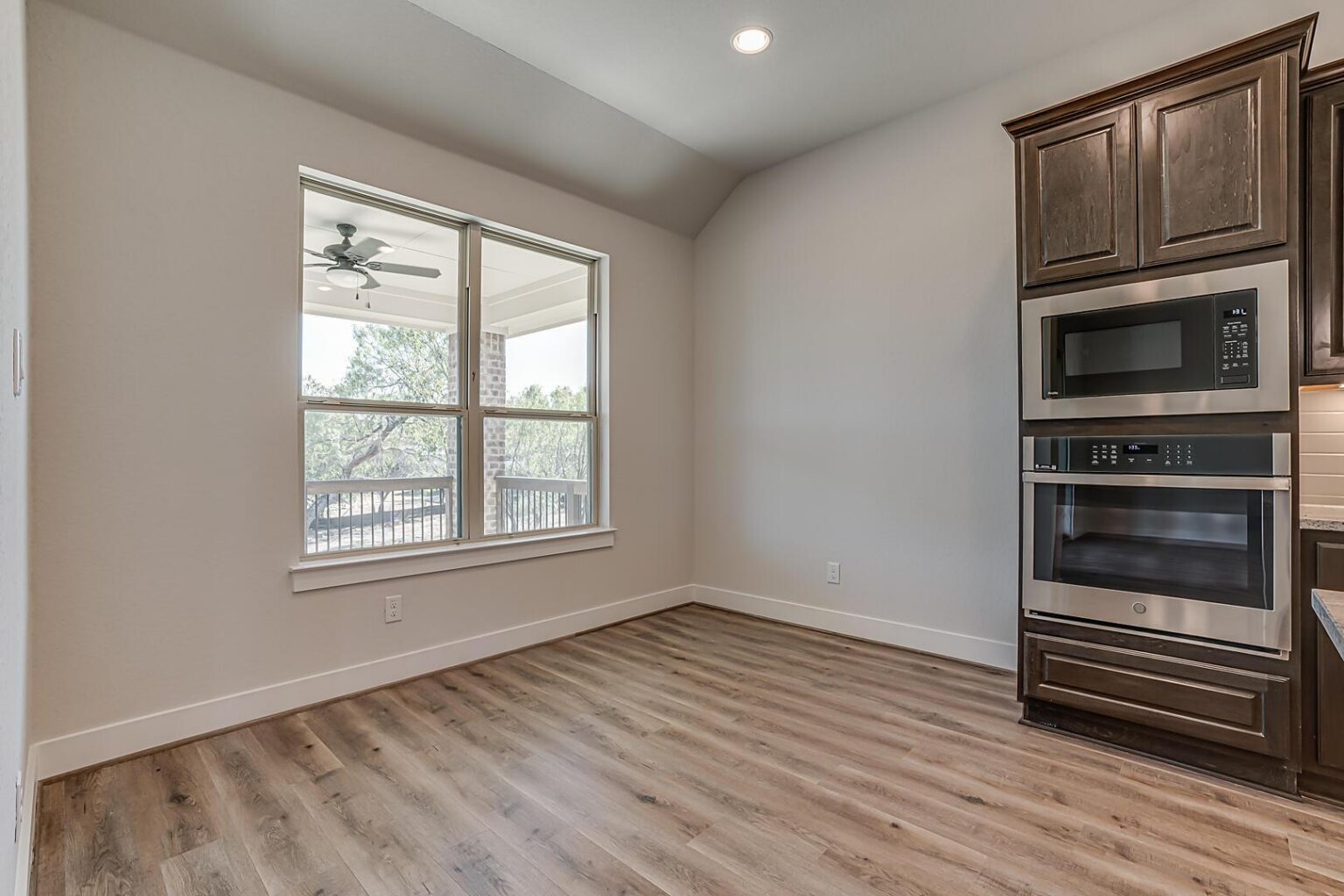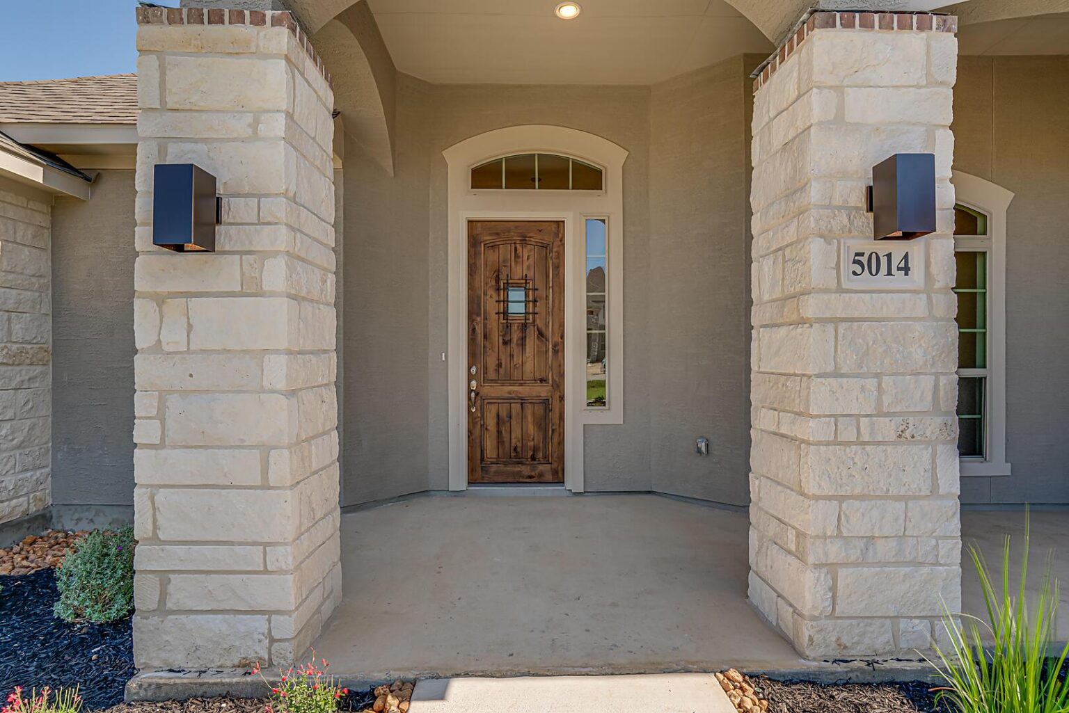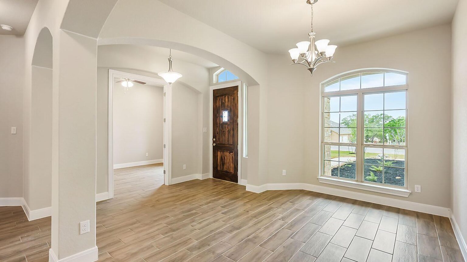 The Calaveras Plan at Everly Estates showcases a refined 2,714 sq. ft. open-concept design perfectly situated on an expansive 1/2 acre homesite. Engineered for peak efficiency, the residence includes a high-performance cooling system, Low E 3 solar reflective windows, and a gas tankless water heater to minimize utility costs. The interior is defined by elegant luxury vinyl plank flooring and a wood-burning fireplace featuring a custom stone surround and mantle. A designer kitchen serves as the heart of the home, boasting J-Kraft custom shaker 42” cabinetry, premium GE® stainless steel appliances, and a specialized Kinetico drinking water system. The exterior is equally impressive, featuring a brick and stone elevation and a professional irrigation system that maintains the native drought-resistant landscaping.