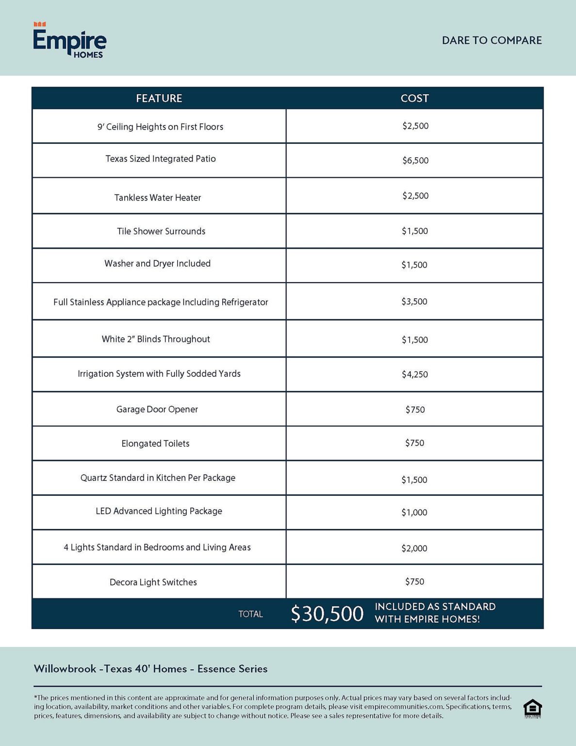 With Empire Homes, you get $50,000 more in standard features without spending more each month. Plus, low rates and closing costs available on select homes for a limited time.