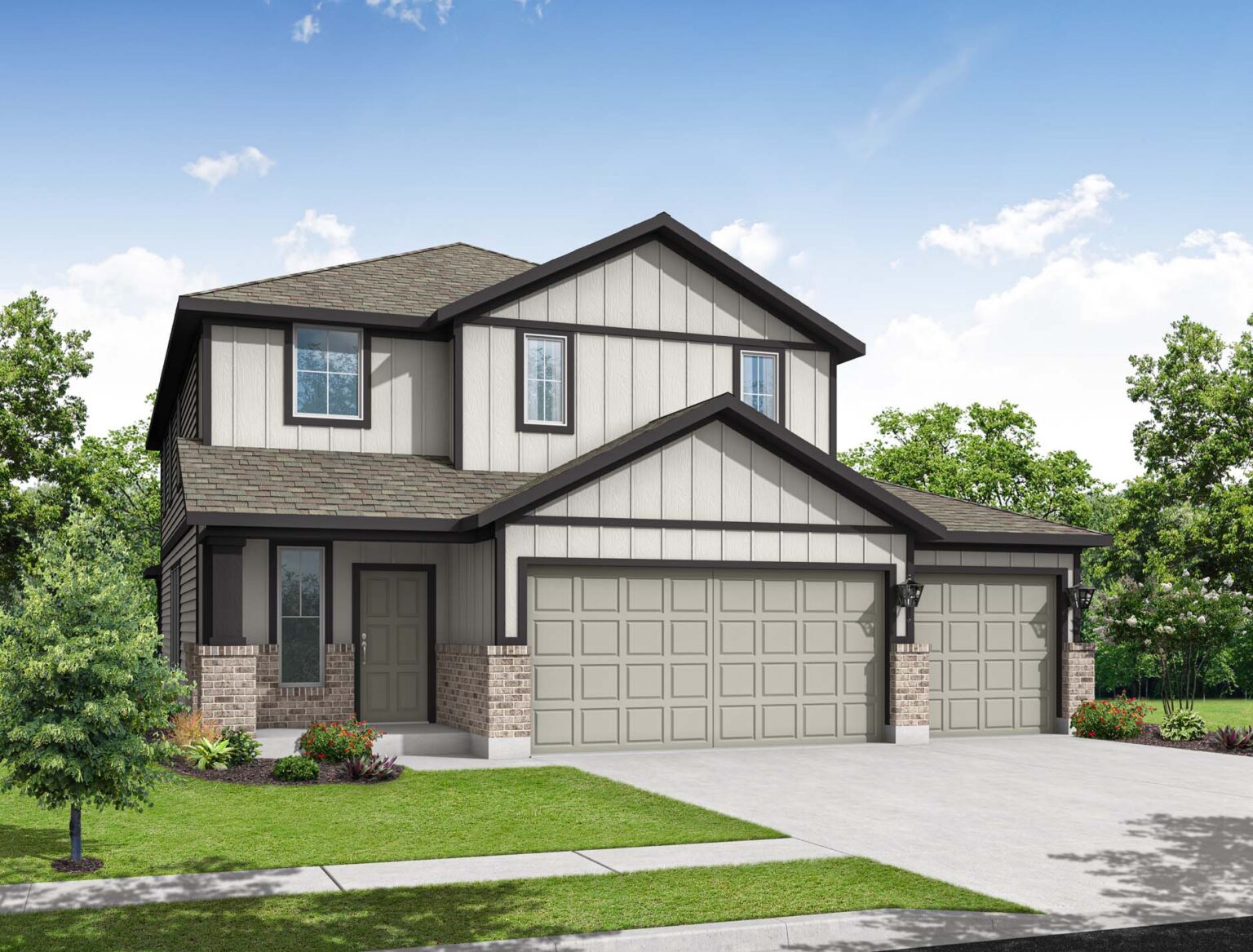 Experience the ultimate in spacious family living with the Navarro, an expansive 2,350-square-foot floor plan spanning two beautifully designed levels. This impressive home features five versatile bedrooms and three and a half bathrooms, providing ample space for everyone in the household. The main floor boasts a grand open-concept layout, where a chef-inspired kitchen with a walk-in pantry overlooks the casual dining area and a massive living room. Tucked away for maximum privacy on the first floor, the primary suite features a spa-like bath and an oversized walk-in closet. Upstairs, you'll find a massive game room that serves as a second living area, surrounded by four additional bedrooms and two full baths. Outdoor entertaining is a breeze on the oversized covered patio, perfectly positioned off the main living area. Complete with a two-car garage and a dedicated laundry room that includes a washer and dryer, the Navarro is the gold standard for modern, large-scale living.
