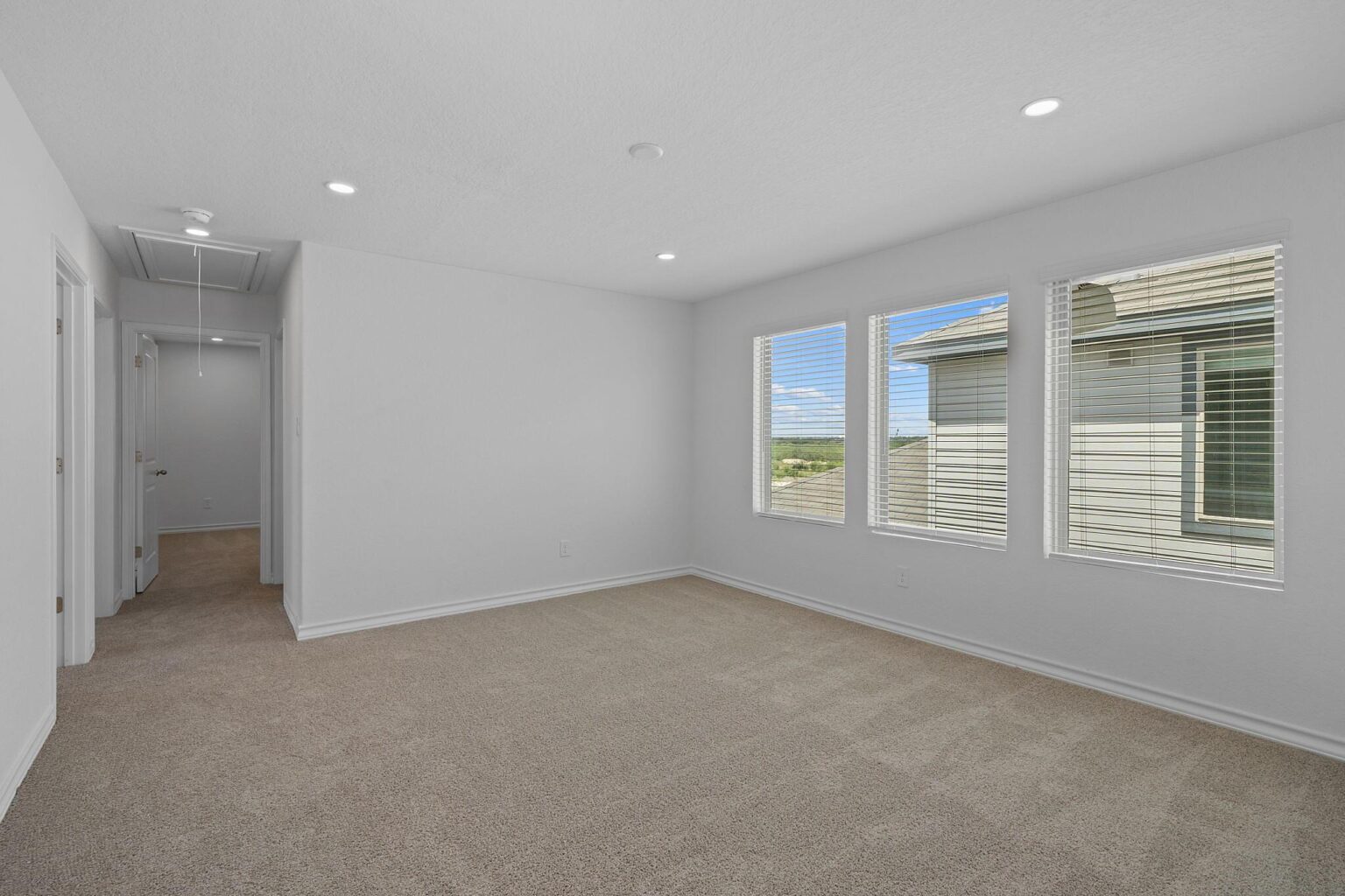 The Presidio offers 2,047 sq. ft. of well-planned living space, blending functionality with contemporary style. The main level features an inviting open-concept layout where the living area, kitchen, and casual dining space flow effortlessly, extending to a covered patio for outdoor enjoyment. A private primary suite with a walk-in closet and spa-like bath provides a peaceful retreat. Upstairs, a spacious game room serves as the heart of the second floor, surrounded by three secondary bedrooms and a full bath. A convenient powder room, dedicated laundry area, and two-car garage enhance everyday practicality. Designed for modern living, this home delivers comfort, versatility, and timeless appeal.