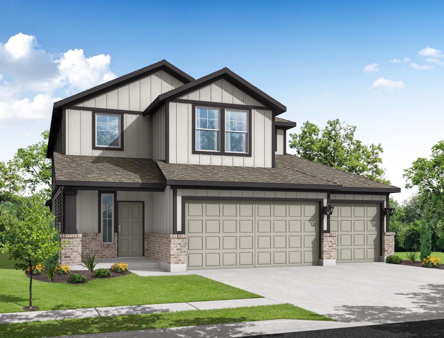 Welcome to the Sabine, a premier two-story floor plan that offers a vast 2,552 square feet of thoughtfully designed living space. This expansive home features five large bedrooms and three and a half bathrooms, providing plenty of room for a growing family or multi-generational living. The main floor is highlighted by a bright, open-concept kitchen and casual dining area that flows into a massive living room. For ultimate privacy, the primary suite is located on the first floor and includes a spa-like ensuite bath and a sprawling walk-in closet. Upstairs, a generous game room serves as a central hub for four additional bedrooms, three of which feature their own walk-in closets. Modern conveniences abound, including a two-car garage and a dedicated laundry room that comes complete with a washer and dryer included. With its spacious covered patio and seamless layout, the Sabine represents the pinnacle of comfort and functional design.