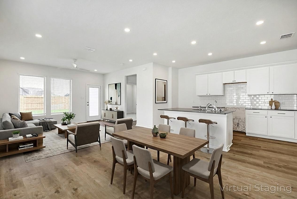 The Bandera is an inviting 1,945 sq. ft. home that effortlessly blends open-concept living with thoughtful separation of space. The main floor features a seamless flow between the kitchen, casual dining, and living room, extending to a covered patio for outdoor enjoyment. A private primary suite on the first floor offers a spacious walk-in closet and an en-suite bath for added convenience. Upstairs, a versatile game room anchors three additional bedrooms, providing plenty of space for relaxation or activities. A dedicated laundry area, ample storage, and a two-car garage enhance everyday functionality. Designed for modern living, this home balances comfort, style, and practicality.