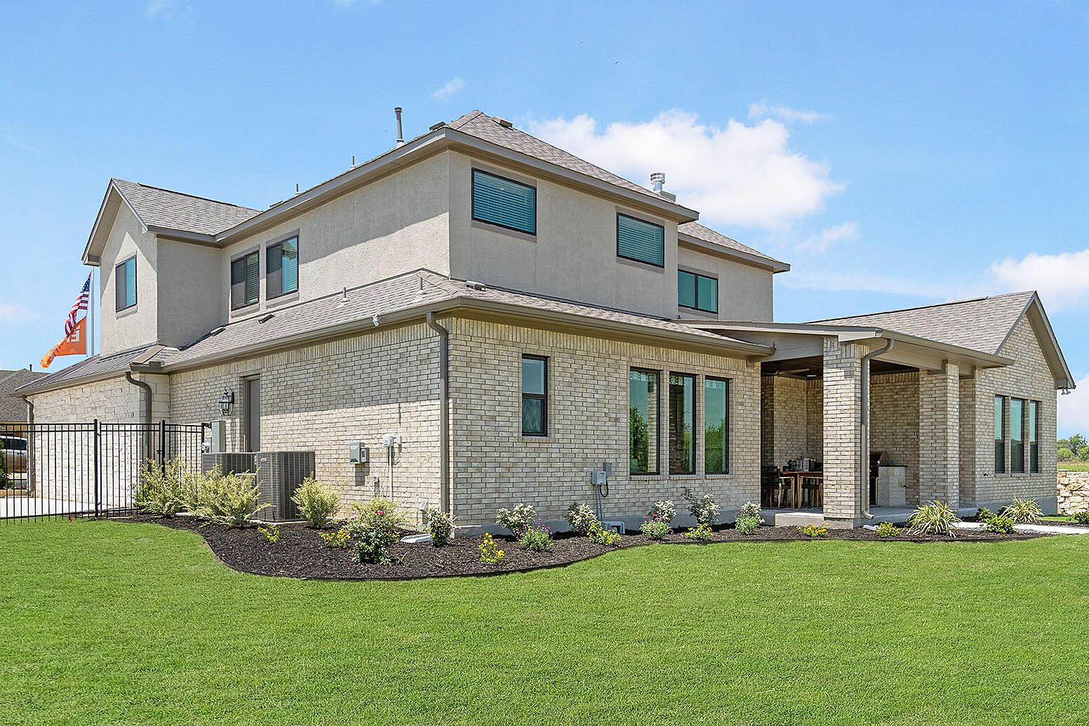 The two-story Aransas floor plan is designed to impress. From its open-concept living, dining and kitchen area to its optional 3-car garage and enhanced kitchen, the Aransas gives you the freedom to let your imagination run wild when it comes to design. The primary bedroom offers residents an ensuite with a spacious walk-in closet, providing the ultimate luxury experience. Three additional bedrooms, a game room, a flex room and a study make this home an excellent choice for families or for those looking for extra space.