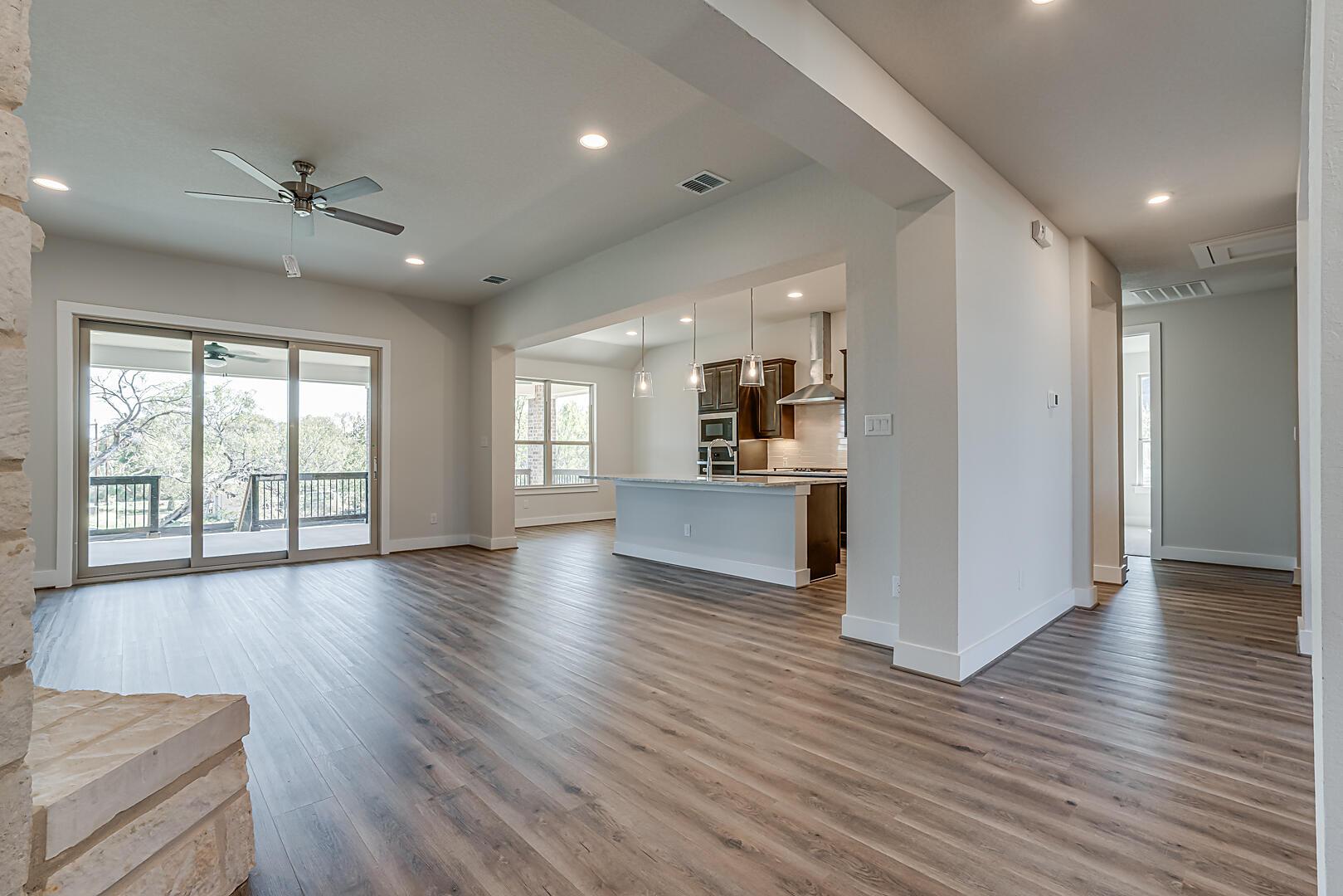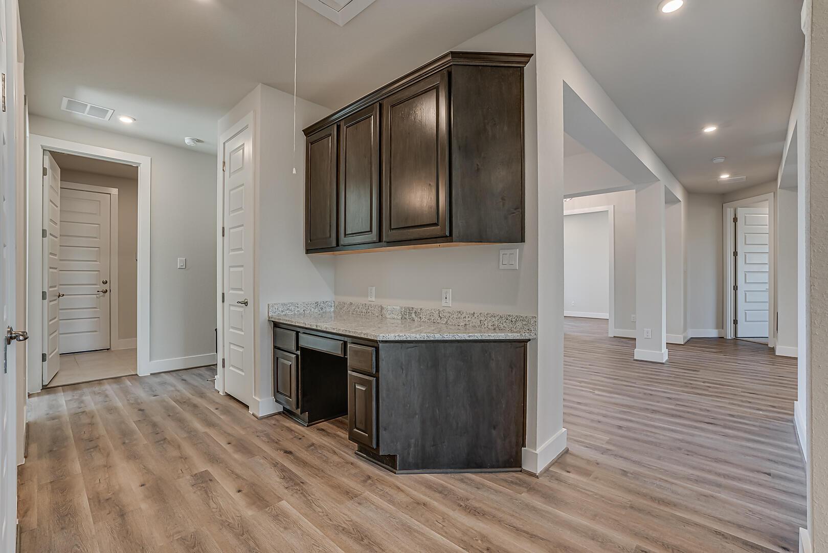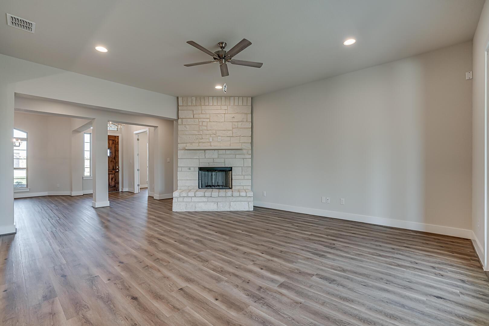 This stunning and spacious 4 bedroom, 3 bath, 3 car garage, single story home measures 2,725 square feet complete with 4 sides exterior masonry. The open concept floor plan with enhanced gourmet kitchen is perfect for cooking and entertaining family and friends. Finishes include custom cabinetry, standard 8’ interior doors and 5” base trim, 36” gas cooktop with chimney vent hood, quartz counters, designer backsplash and under counter lighting. The stylish luxury vinyl plank wood flooring is featured in the study, formal dining room, family room, tech center area, hallways and into the kitchen. Expand your entertainment space by exiting to the spacious outdoors by way of the triple sliding glass door leading to the 29′ expanded covered patio. Retreat to the primary suite with large bay window and pamper yourself after a long day in the large walk-in shower. This home comes equipped with ample closet and storage space throughout. Exterior landscaping includes a fully sodded front, sides and back yard up to 10’ of exterior patio equipped with irrigation system in the yard and landscaped flower beds. The built-in Smart Home Package offers modern convenience at your fingertips.